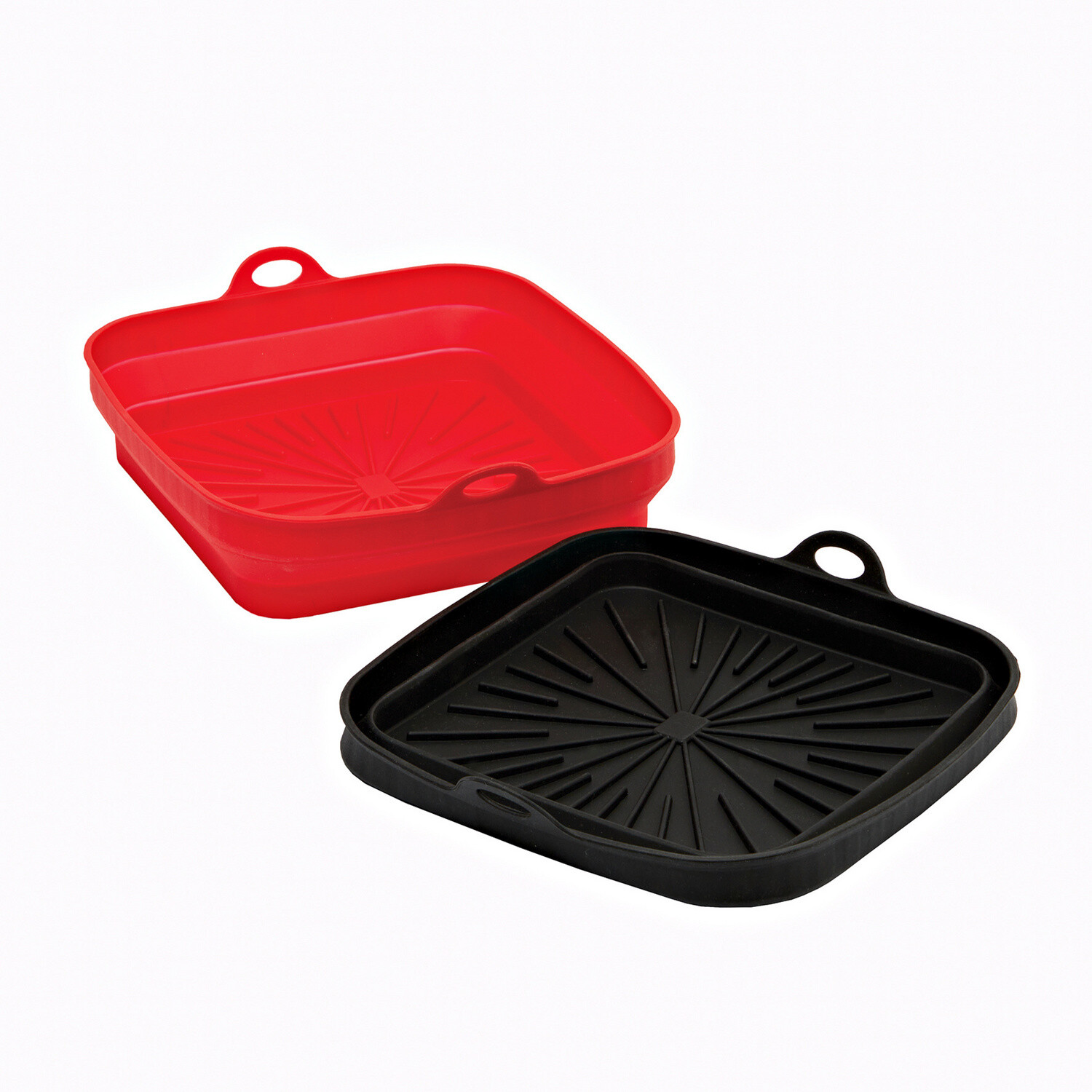 Čtvercové fritovací koše s velkou varnou plochou, žebrováním na dně a optimální cirkulací vzduchu pro rychlé a rovnoměrné vaření. Tepelná odolnost do 230 °C. Také do trouby. Ve 2 barvách. Snadné čištění a úspora místa při skladování.