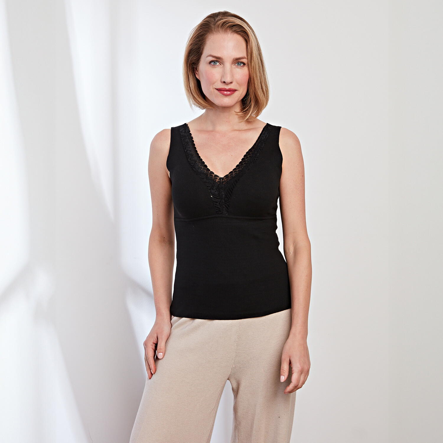 Elegantní tvarující tričko - hřejivé, flanelově měkké a velmi ženské. Termo triko se širokým krajkovým lemem ve výstřihu a odnímatelnými vycpávkami podprsenky nabízí mimořádně projmutý střih a vysoký komfort při nošení. Termo triko s širokou krajkovou vsadkou. Měkké + hřejivé. Tvarované košíky s vyjímatelnými vycpávkami. Mírně tvarující efekt. Vysokoelastické + drží tvar.