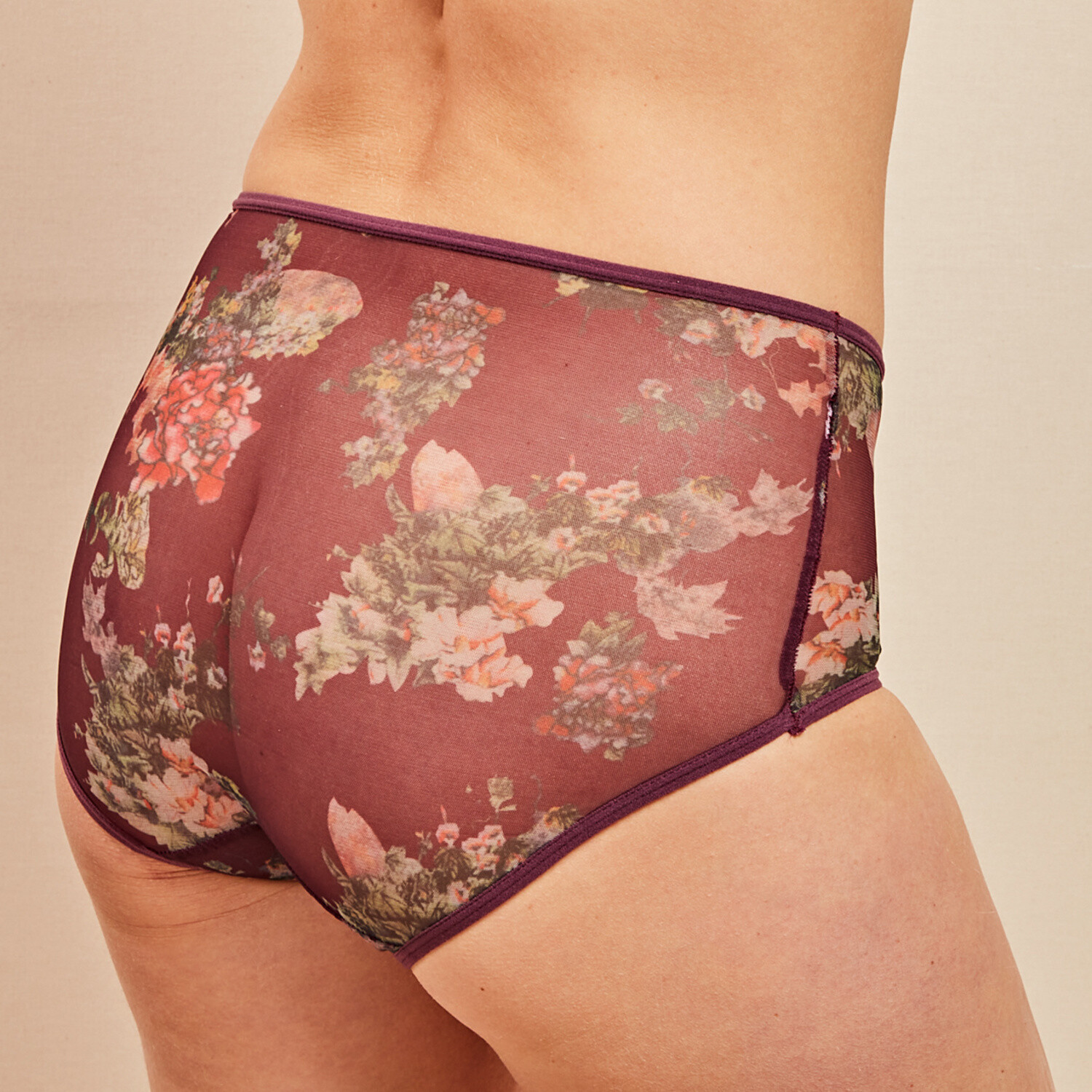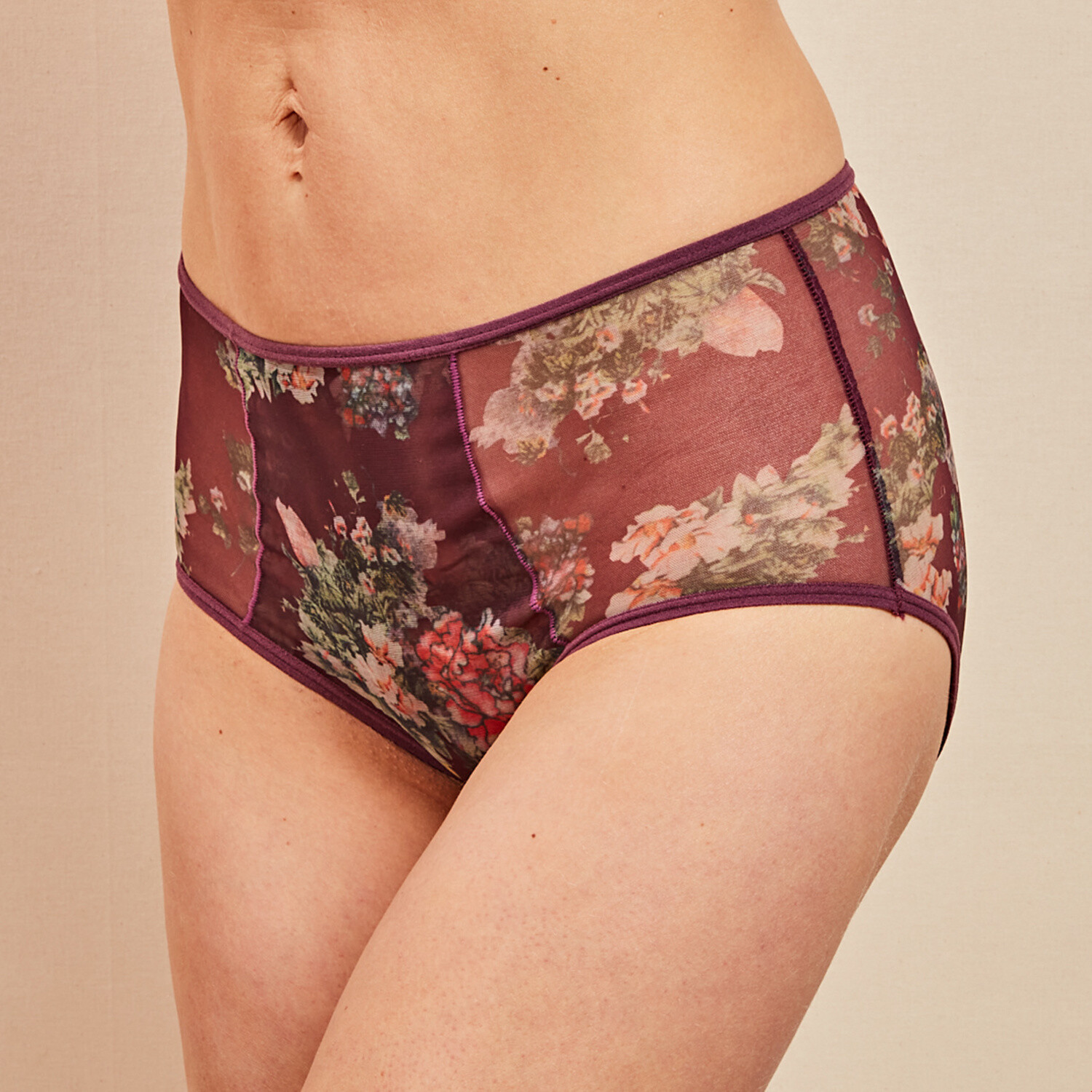 Rafinovaně průhledné kalhotky do pasu v jemném růžovém designu. Perfektně sednou a jsou velmi pohodlné díky vysokému střihu. 3 barvy: bordó, černá, béžová. Lze prát na 30 °C. Jemný design růží. Diskrétně transparentní. Skvěle sedí díky vysokému střihu.