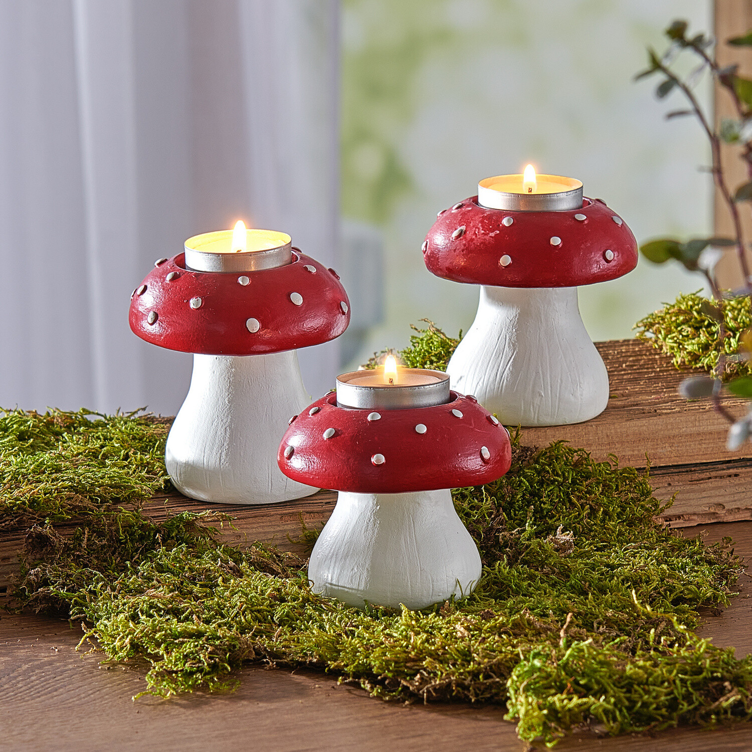 Tato pěkná trojice muchomůrek vytváří útulnou atmosféru nejen na podzim. Vhodné na voskové a LED čajové svíčky. 3 velikosti. Sada 3 ks. Eldo. Dodáváno bez čajových svíček.