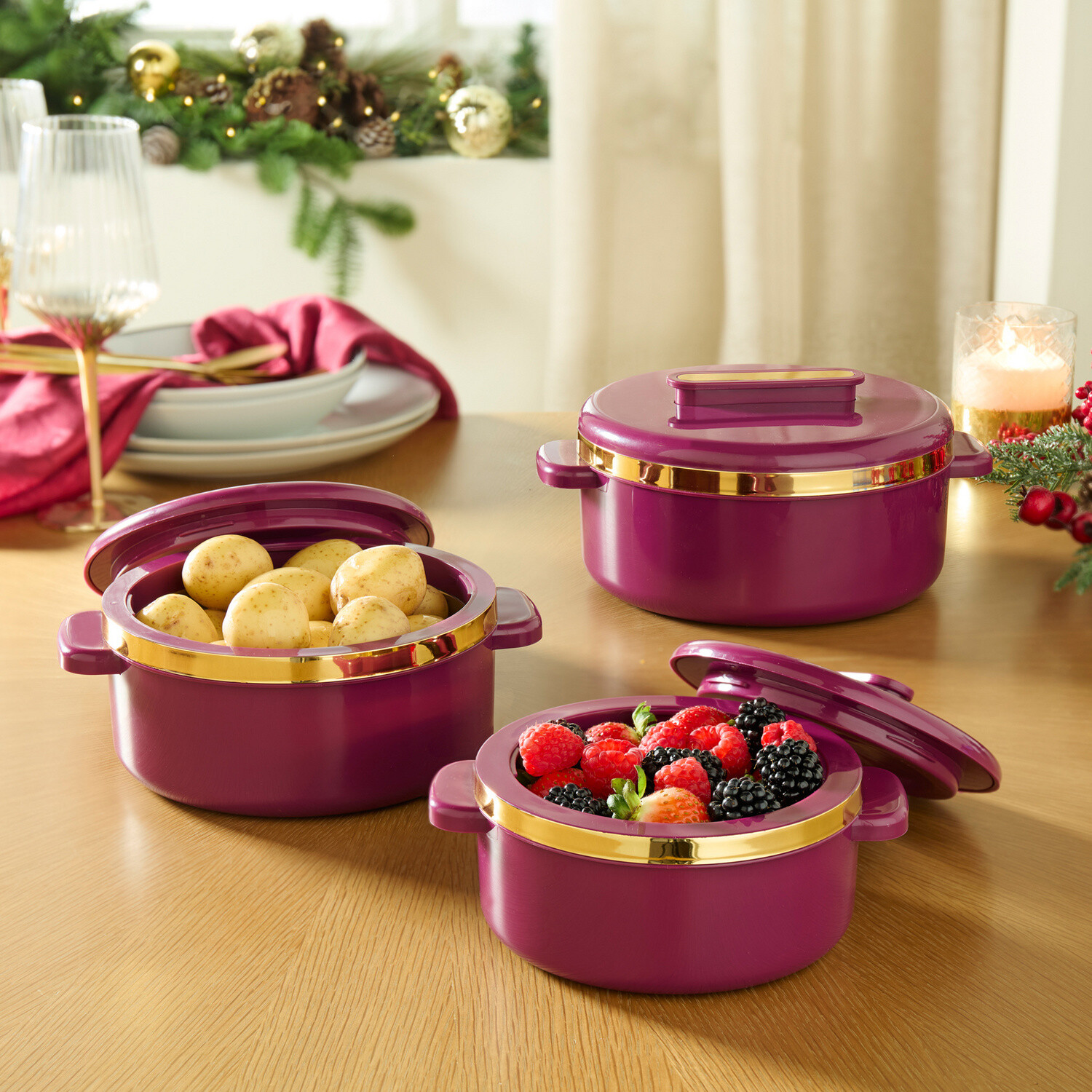 Už žádné ohřívání ani chlazení! Všechno musí být dokonalé, zvláště když se blíží slavnostní jídlo. V našich elegantních termo miskách s prvotřídní izolací z nerezové oceli a těsně přiléhajícím víkem zůstane vše horké jako čerstvě vytažené z trouby - nebo ledové jako z lednice. Nyní jako sada 3 kusů za speciální cenu! Kvalitní izolace z nerezové oceli. Odolnost proti úniku tekutiny. Lze je stohovat. Na teplá + studená jídla. 3 velikosti. Basilico.