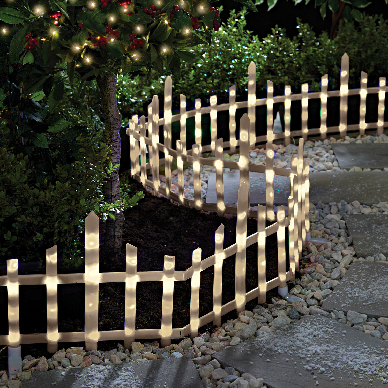 Dodejte své zahradě slavnostní ráz. 8 panelů se 14 cm dlouhými hroty tvoří 2,8 m dlouhý plot. Bateriový box s krytím IP a 8 různými světelnými režimy okouzlí fantastickou hrou světla: nepřetržité světlo, blikající světlo, blikající a vlnící se efekty a mnoho dalšího. Nastavitelné pomocí časovače na 6/18 hodin - snižuje spotřebu baterií! 8 panelů = 2,8 m plotu. 4 LED na každém panelu. 8 režimů osvětlení. 6/18 hodinový časovač. Odolný vůči počasí. Gainsborough.