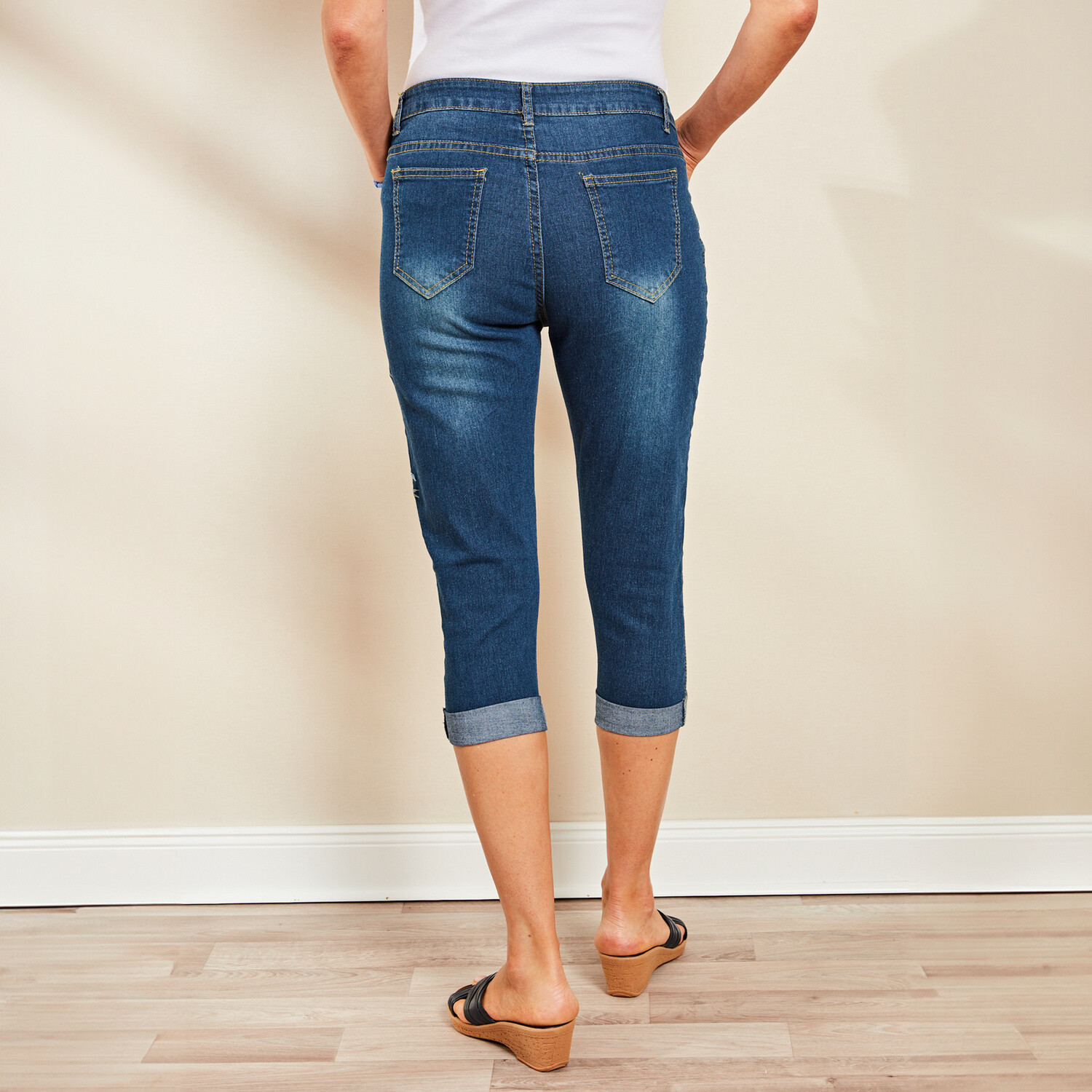 Naše oblíbené slim džíny s high-tech tvarujícím efektem nyní v délce capri: v klasickém stylu se 4 kapsami, hladké nebo s módní květinovou výšivkou. Skrývají nedostatky postavy, jsou vysokoelastické, super elegantní a mimořádně pohodlné. Vysokoelastické + šetrné k pokožce. Lze prát na 30°C.