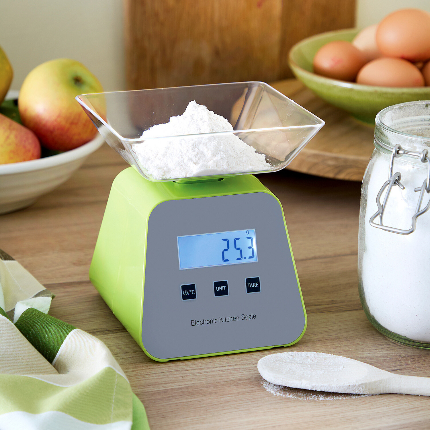 Moderní kuchyňský pomocník v retro designu: prostoro úsporná malá váha s přesným měřením, snadno čitelným digitálním displejem a vyjímatelnou miskou na sypké suroviny. Provoz na 2 mikro baterie AAA (není součástí). Úspora místa. Velký digitální displej. Přesné měření. S vážícími miskami.