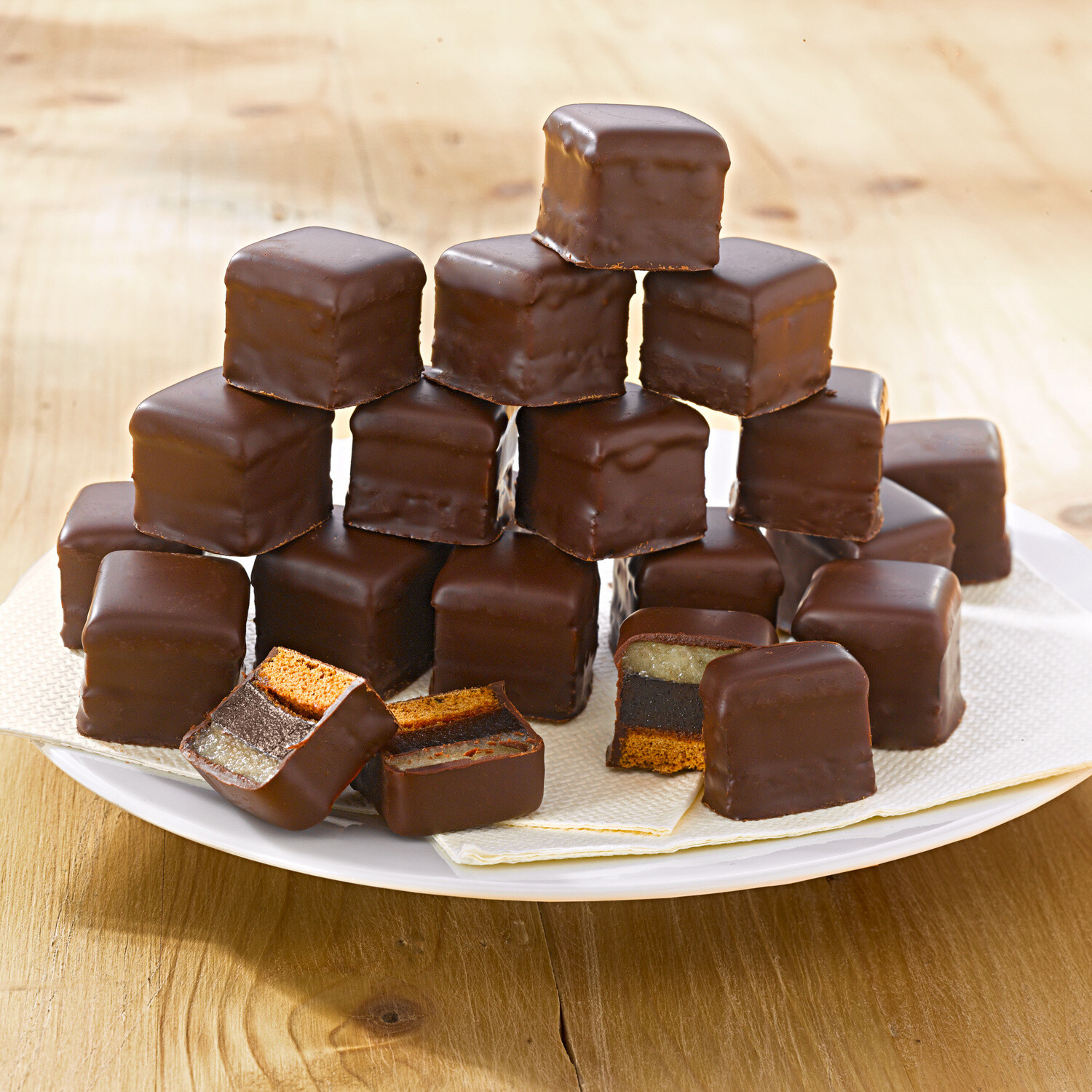 V tradiční trojité skladbě: ovocné želé, persipán a perník v obalu z jemné hořké čokolády – delikatesa! Prosím, vezměte na vědomí, že u potravin je vyloučena možnost výměny zboží, kromě opodstatněné reklamace jakosti. Může obsahovat stopy arašídů, ořechů, mléka, vajec, sušeného ovoce, sóji a obilovin s obsahem lepku. Ovocné želé, persipán a perník v jemné čokoládě. 3 náplně.