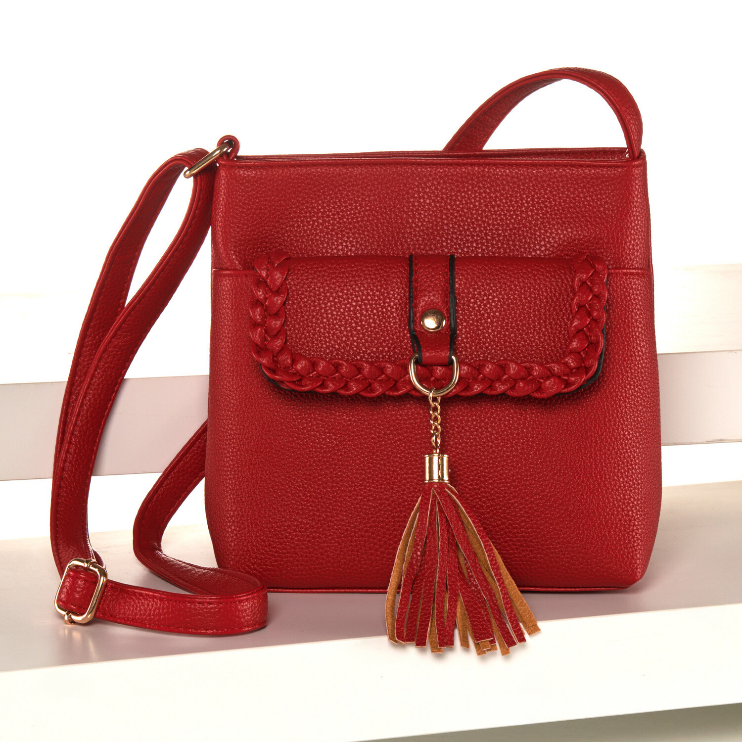 Přední kapsa s jemným proplétáním, elegantním ozdobným střapcem a magnetickým uzávěrem dodává této kabelce přes rameno zvláštní šmrnc. Prostorná hlavní kapsa, 1 vnitřní kapsa, nastavitelný ramenní popruh. Magnetický zámek s ozdobným střapcem. Jemné copánkové akcenty. Nastavitelný ramenní popruh.