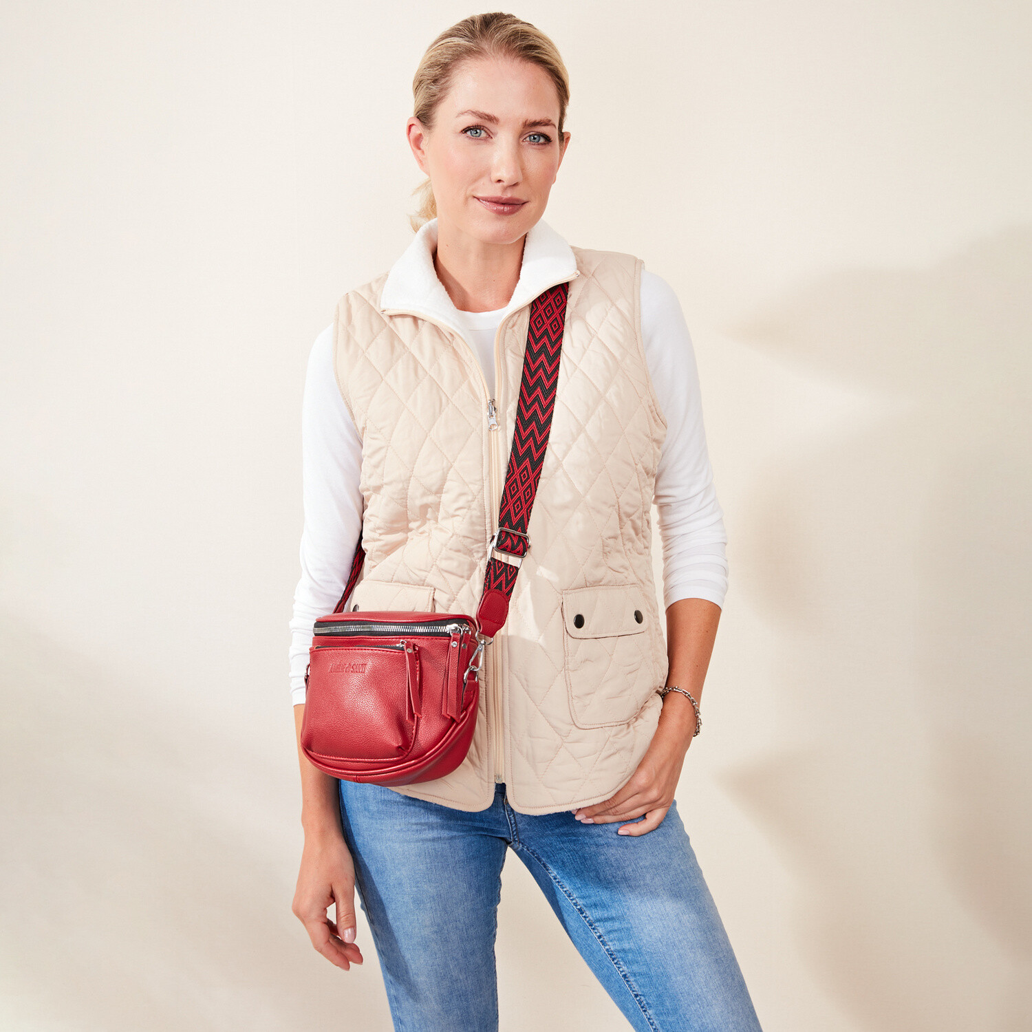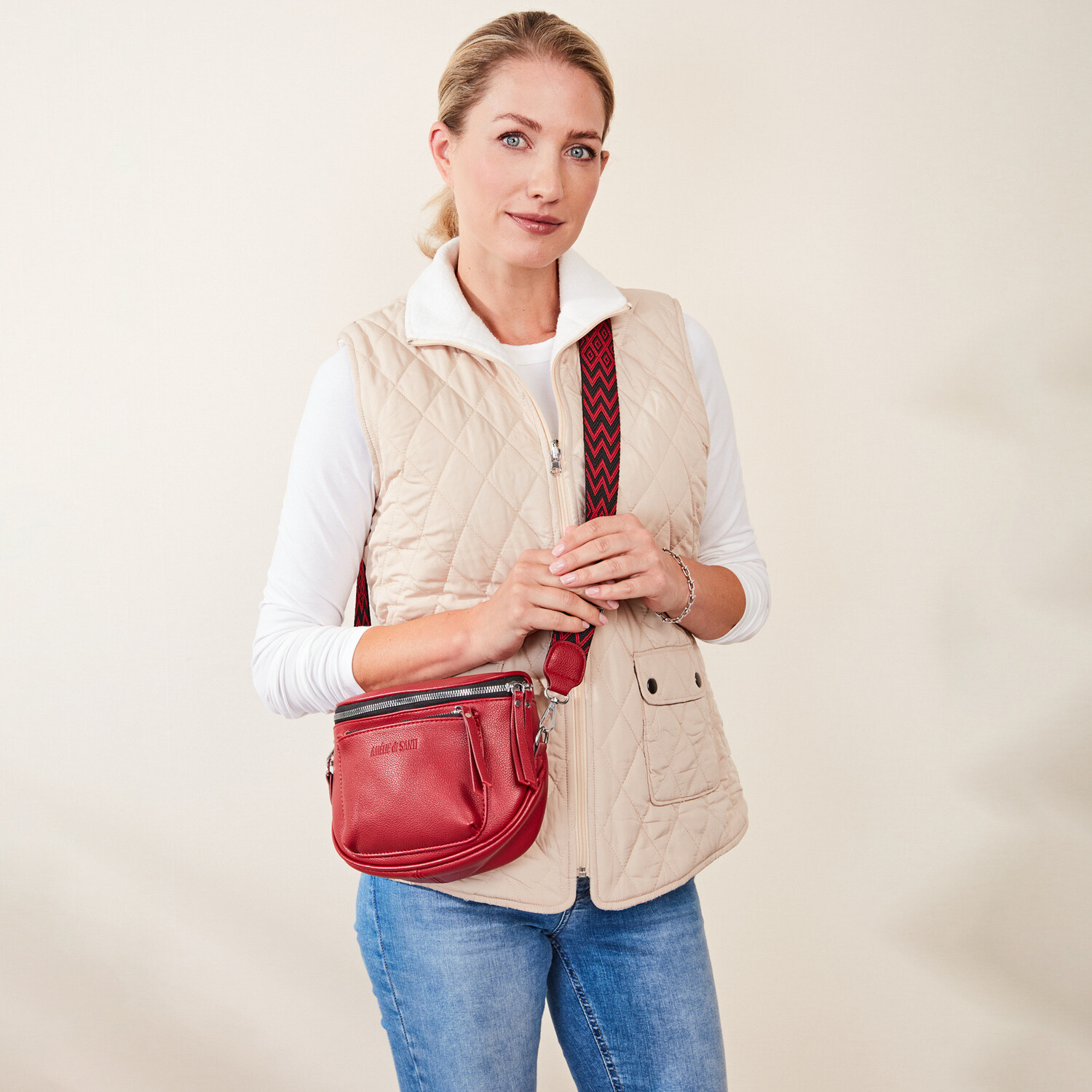 Malá, kompaktní, špičkový design. Se 2 vyměnitelnými ramenními popruhy. Je úžasné, co všechno tato univerzální kabelka s prostornou hlavní přihrádkou a přední kapsou unese. Jednoduše vyměňte obyčejný ramenní popruh z umělé kůže za vzorovaný crossbody popruh podle nálady a outfitu. 2 vyměnitelné ramenní popruhy. Kvalitní design. Úžasně prostorná. Amélie di Santi.