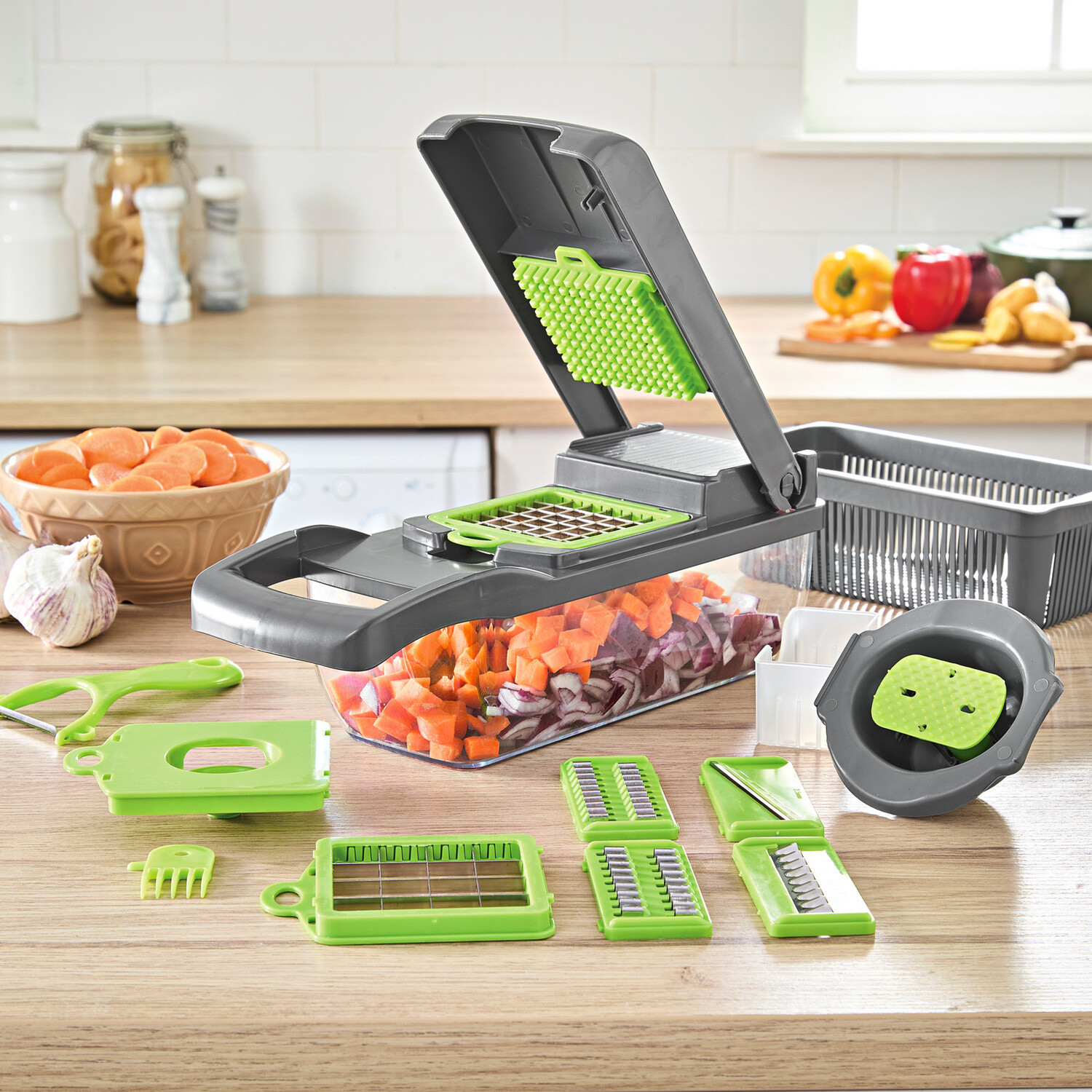 Nakrájet meloun nikdy nebylo jednodušší. Speciální kráječ se o to postará snadno a rychle. Jednoduchá manipulace díky speciálním úchytkám. Rozměry: 35 x 31 x 7 cm.