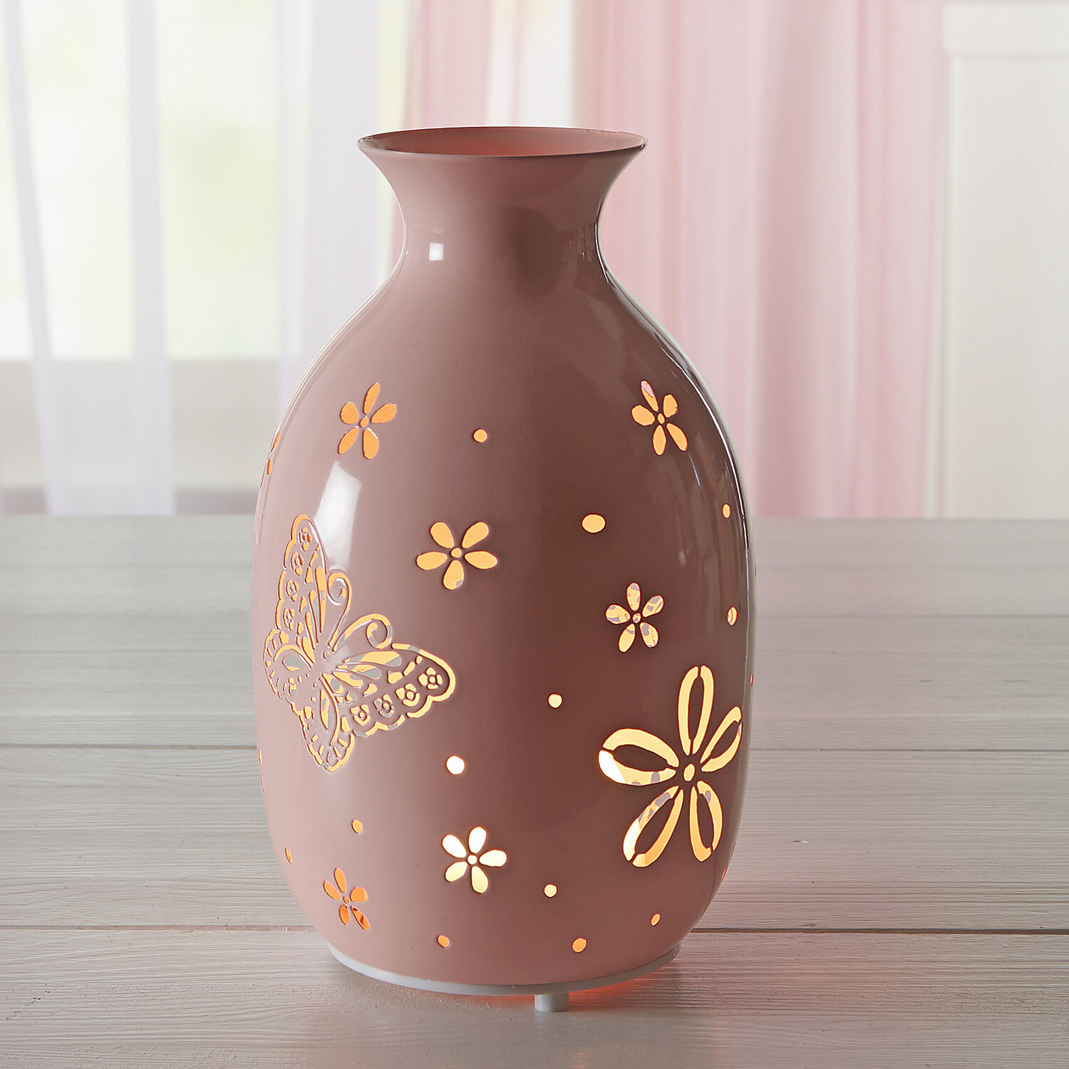 Tato perforovaná váza s motýly a květinami překvapí barevnou hrou světla a barev – úžasný efekt! Stmívač a 4 barevné režimy lze snadno ovládat pomocí dálkového ovladače. S USB připojením. Perforovaný kov. Včetně dálkového ovladače. 4 barevné režimy + stmívač. Není vhodná pro vodu. Eldo.