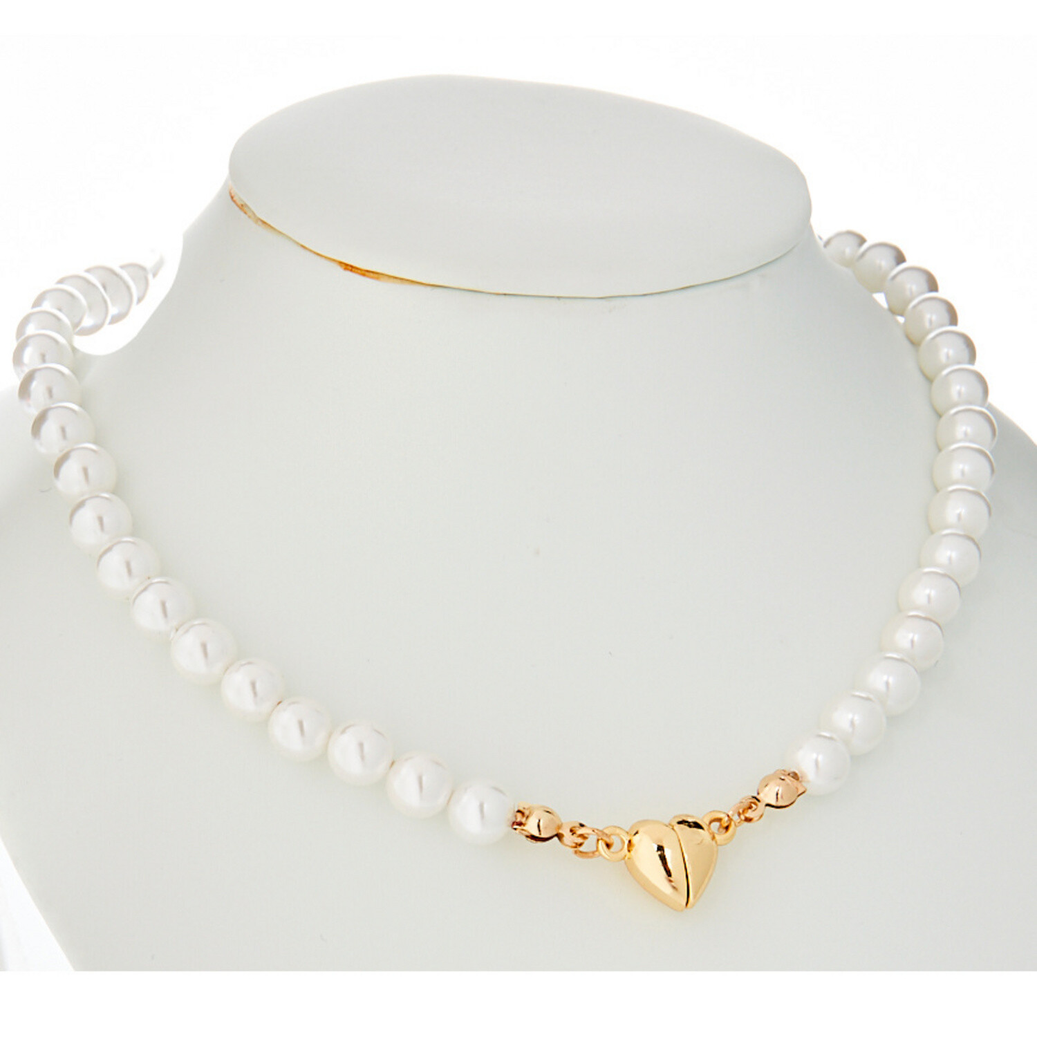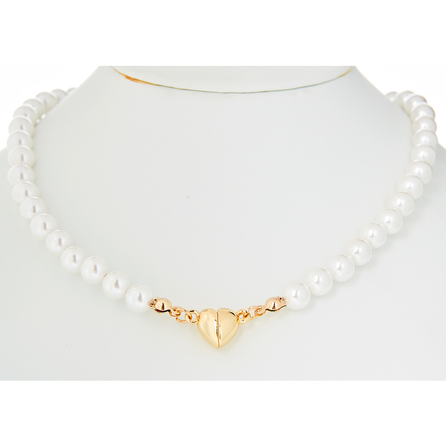 Stylový nezbytný doplněk pro každou ženu: elegantní sada šperků z mušlí s rafinovaným leskem. Každý kus je jedinečný. Klasický perlový náhrdelník s magnetickým zapínáním ve tvaru srdce. Korálky z pravých mušlí.  Amélie di Santi.