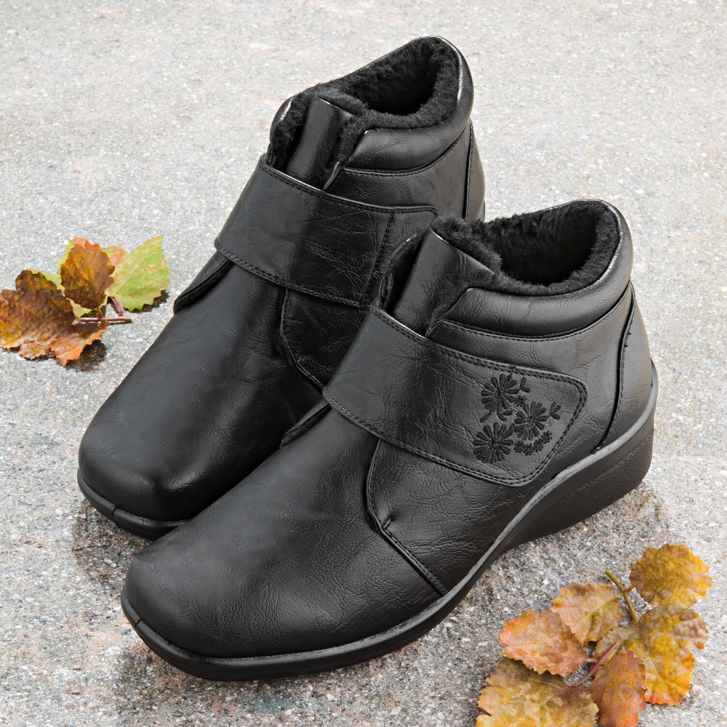 Komfortní obuv se širokými pásky na suchý zip pohodlně obujete. Hřejivá podšívka Vás bude hýčkat příjemným teplem, protiskluzová podrážka zajistí tlumení nárazů při chůzi. Klínový podpatek cca 5 cm. Rovnoměrné zvlhčení: Nejjemnější perforace pro dokonalé žehlení bez skvrn od vody. Pohodlné obouvání. Pásek na suchý zip s květinovou výšivkou. Protiskluzová podešev.
