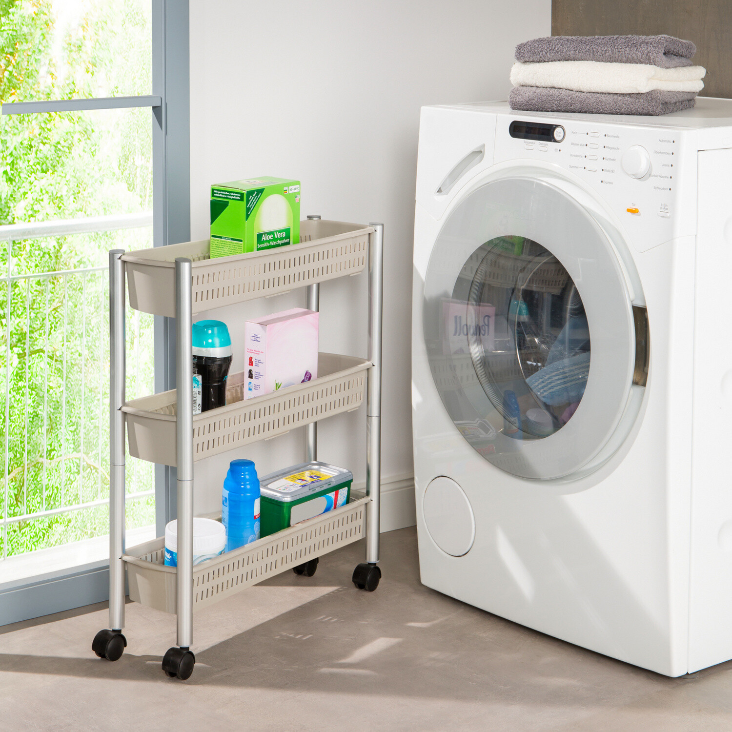 Proč plýtvat místem? Praktický organizér na kolečkách se třemi prostornými regály promění výklenky a mezery v cenný úložný prostor – například na čisticí prostředky nebo zásoby. Stabilní + pojízdný. Univerzální. 3 prostorné regály.