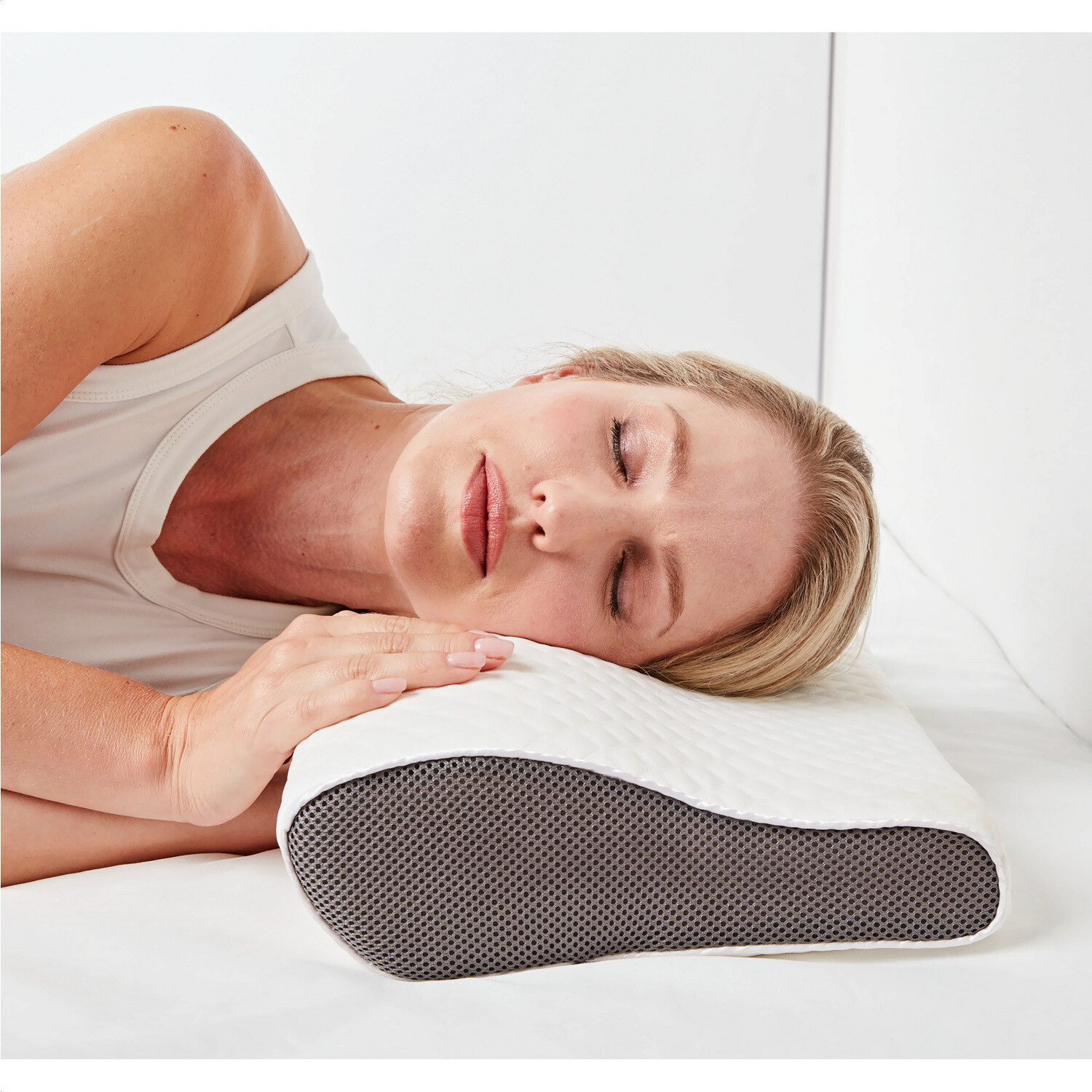 Tento speciální polštář vyvýšený na bocích snižuje tlak na obličej a brání tvorbě vrásek při spánku. Zároveň podpírá krk a ramena a zajišťuje optimální polohu při spánku, šetrnou pro Vaše záda. Snižuje také riziko chrápání. Saténový potah lze sundat a vyprat. Proti vráskám při spaní. Zabraňuje otáčení hlavy. Podpírá krk + ramena. Zlepšuje polohu při spánku. Měkký a prodyšný.