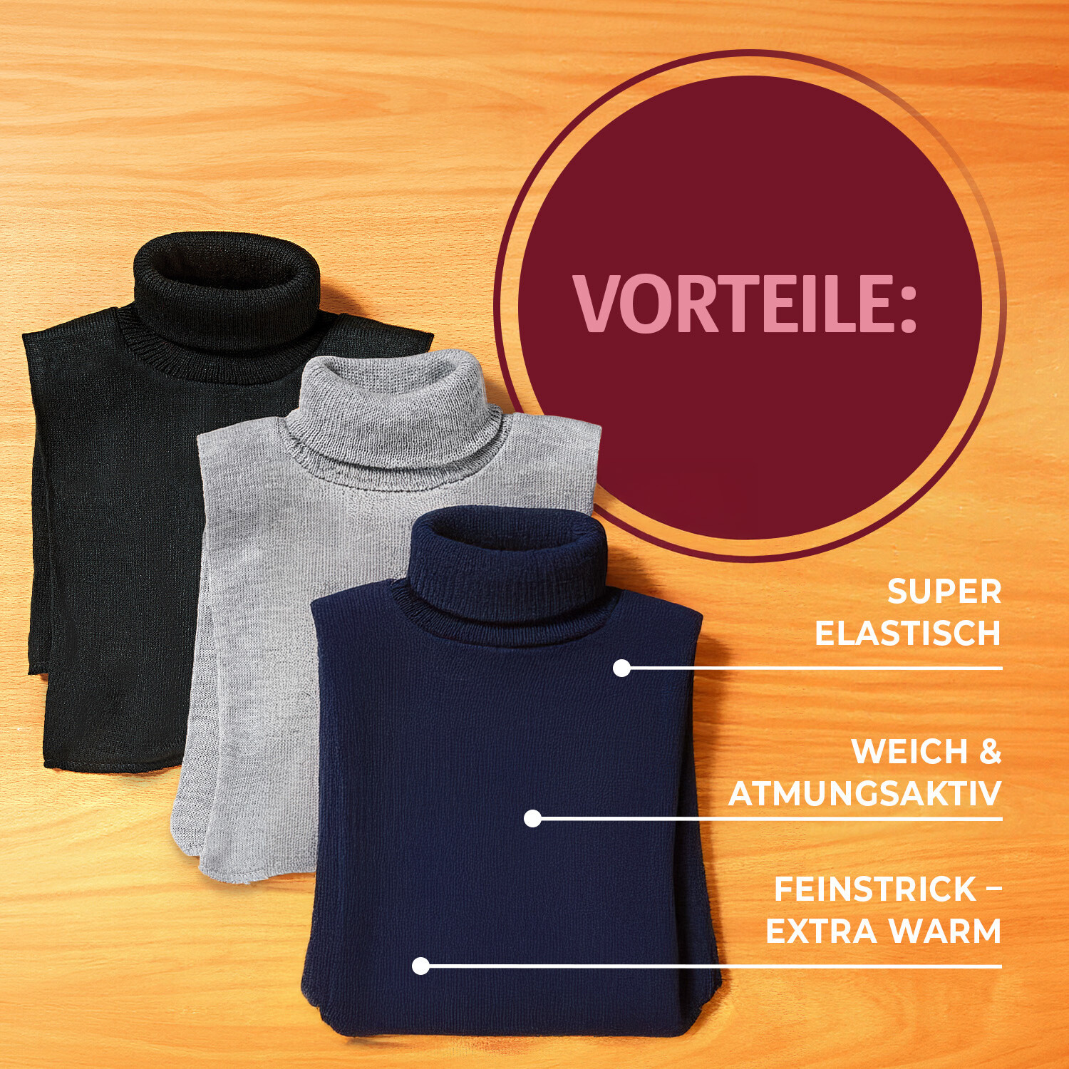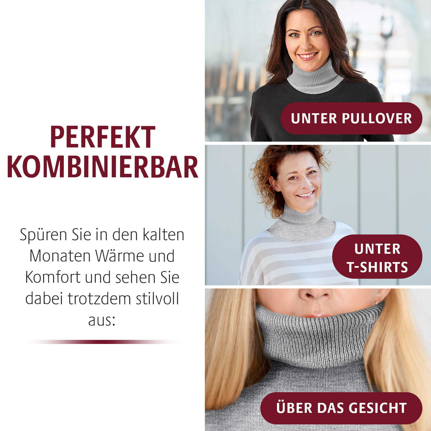 S těmito elegantními zimními šálami můžete vykouzlit hřejivé límce na svetrech, košilích a šatech. Barevné podzimní listí nebo ornamenty: stačí zapnout a přehodit. Zimní šály ve 2 designech. Mnoho možností kombinování. Zapínání na 2 knoflíky. Vykouzlí límce na svetrech, košilích a šatech.