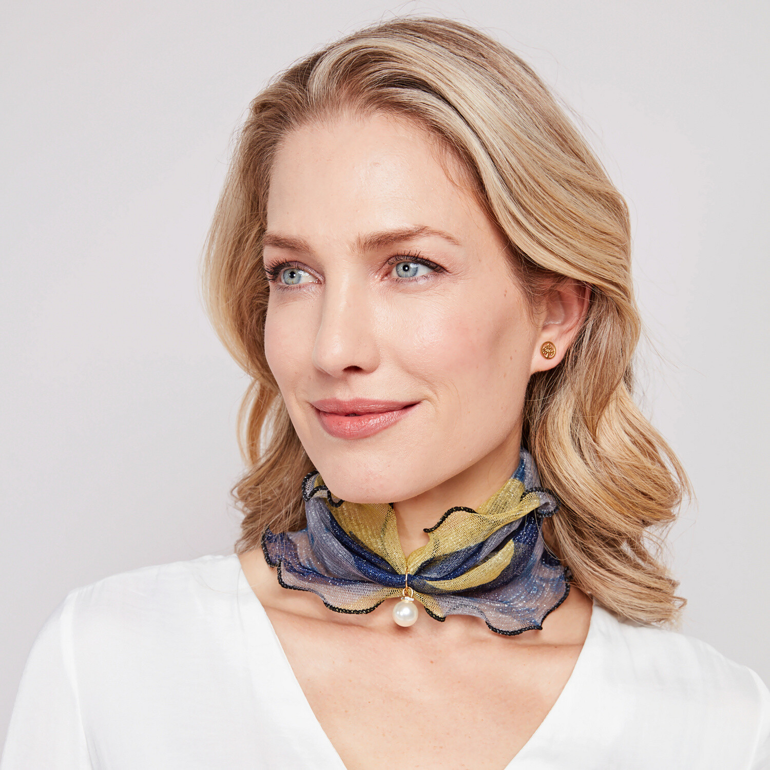 Ušetřete si neustálé rovnání šátku! Elegantní šátek z organzy vždy perfektně padne, protože ho můžete nařasit pomocí elegantního kroužku.