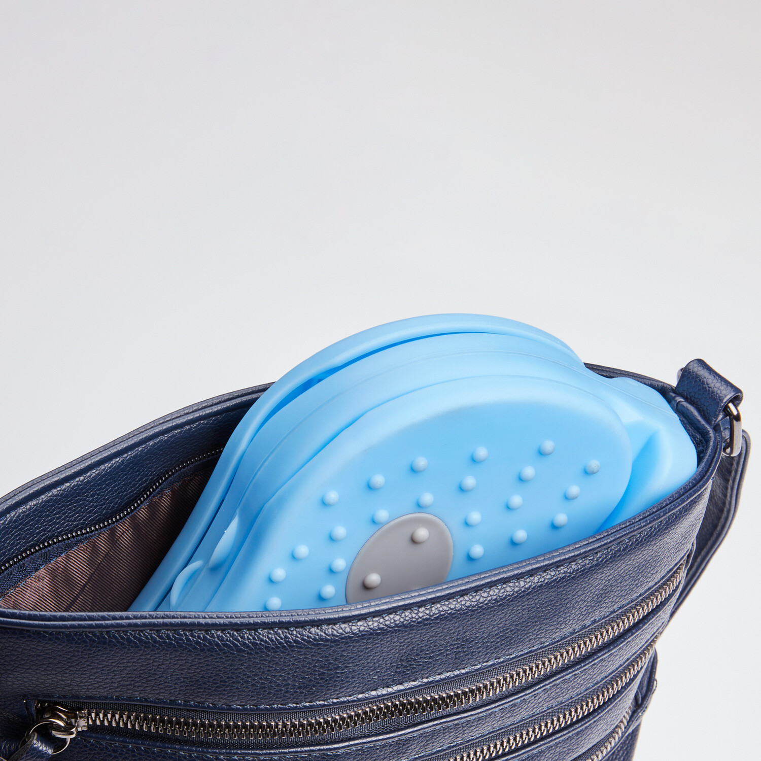 Díky skladovacímu mini-steperu můžete cvičit pohodlně vsedě a všude. Vejde se do každé kabelky a je nenáročný na klouby. Stimuluje krevní oběh a žilní činnost, získávání srdce, plic a svalů nohou. Ideální i pro lidi s problémy s koleny, kyčelními klouby a zády. Lehký + skládací. Vejde se do každé kabelky. Trénuje žíly + svaly nohou.