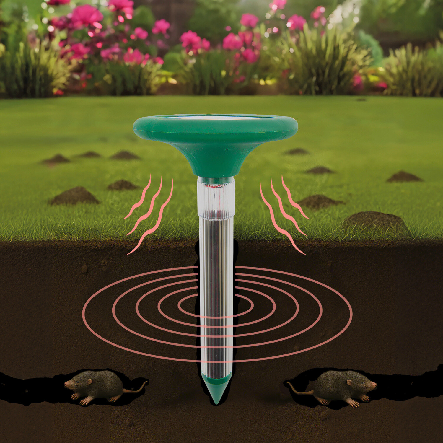 Zbavte se krtků způsobem, který je šetrný ke zvířatům a bez chemikálií! Tento odpuzovač krtků na solární energii vysílá vibrace do země, aby odháněl škůdce. Má také jemné noční světlo. Odpuzuje krtky bez použití chemie. Solární pohon, s jemným nočním světlem. Žádné nebezpečí pro domácí mazlíčky ani divokou zvěř. Stačí umístit do záhonů nebo na trávníky.