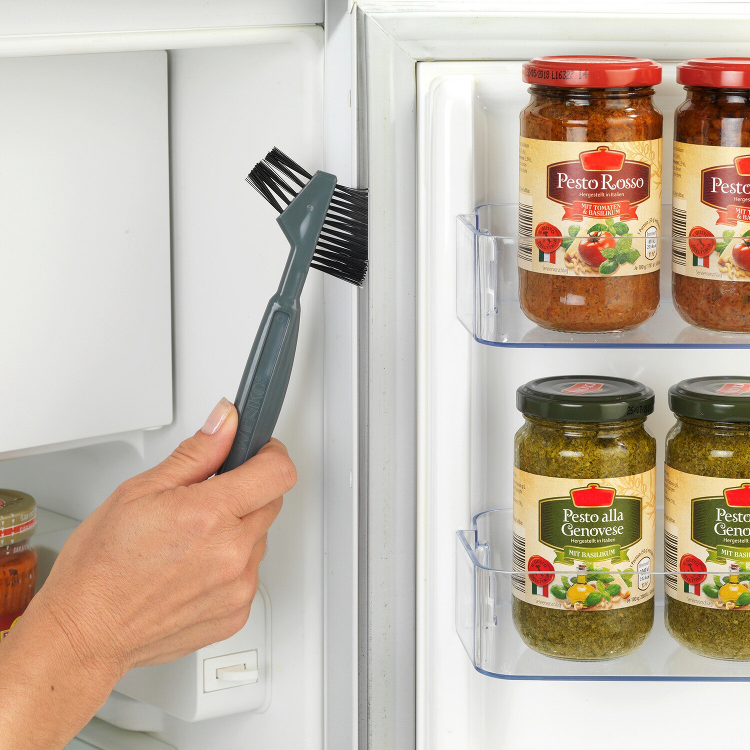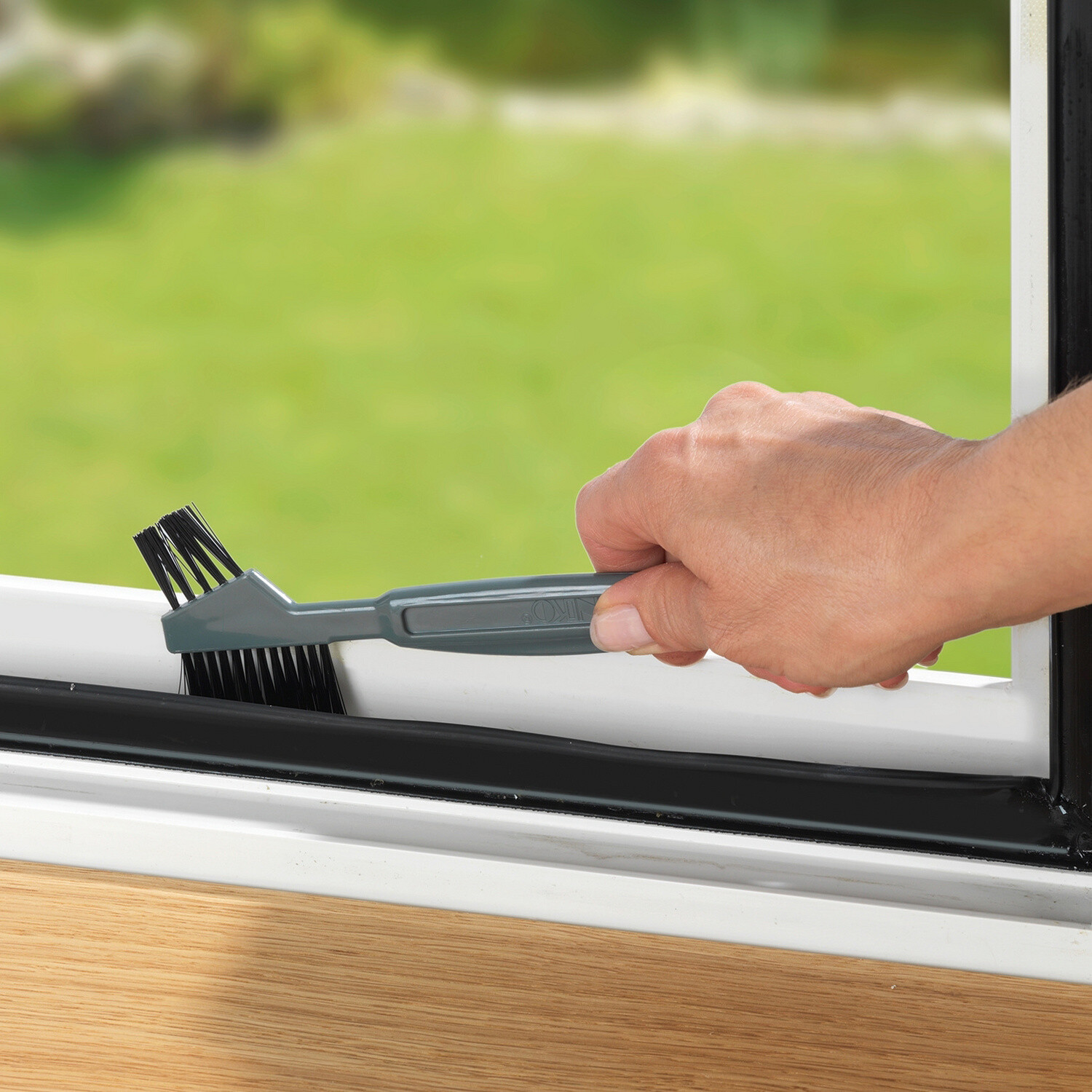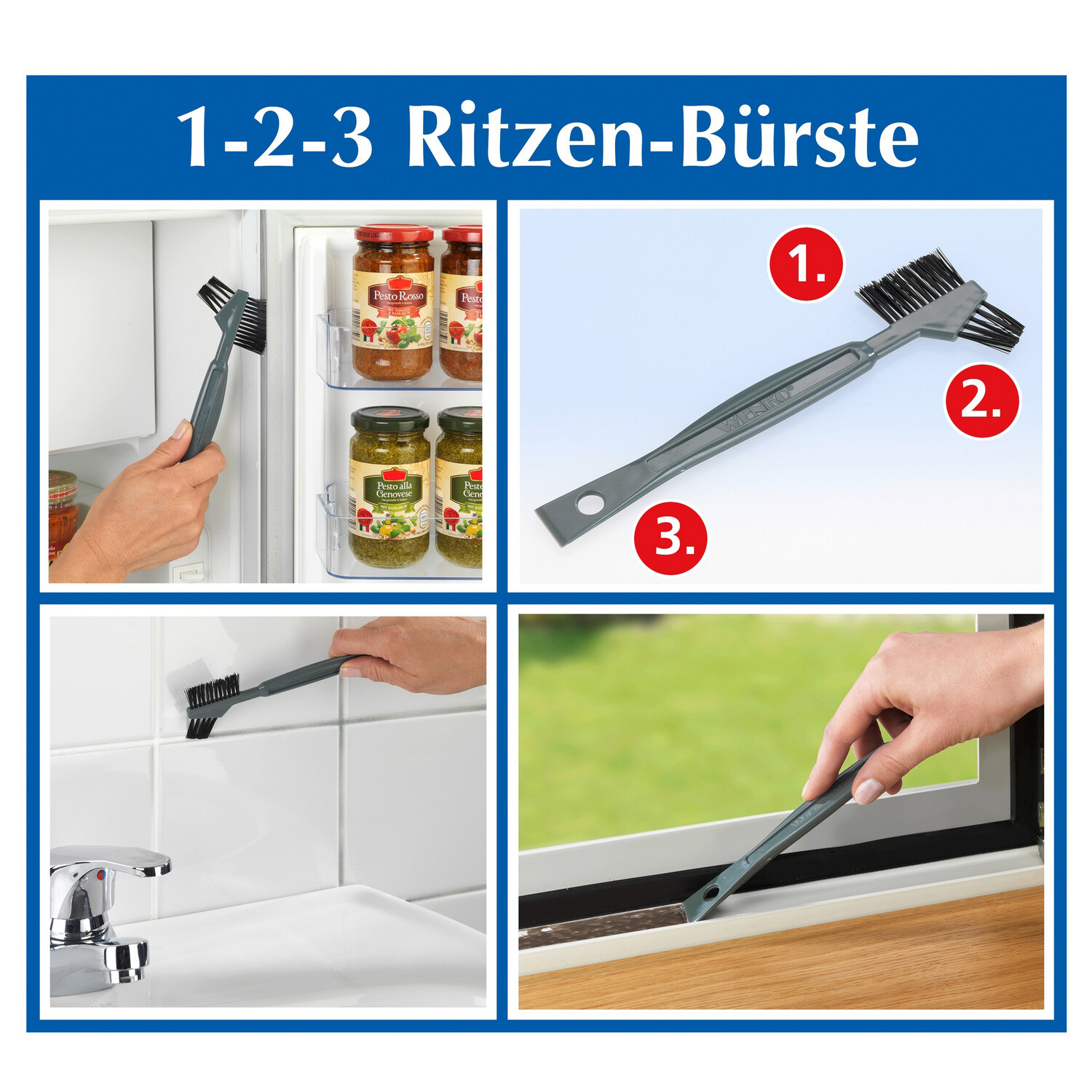 Štěrbinový kartáč se 2 různými hlavicemi štětin vyčistí všechny praskliny, drážky a mezery. 2 různé hlavice kartáče. Škrabka na silné nečistoty. S otvorem na zavěšení. Praktický + všestranný.