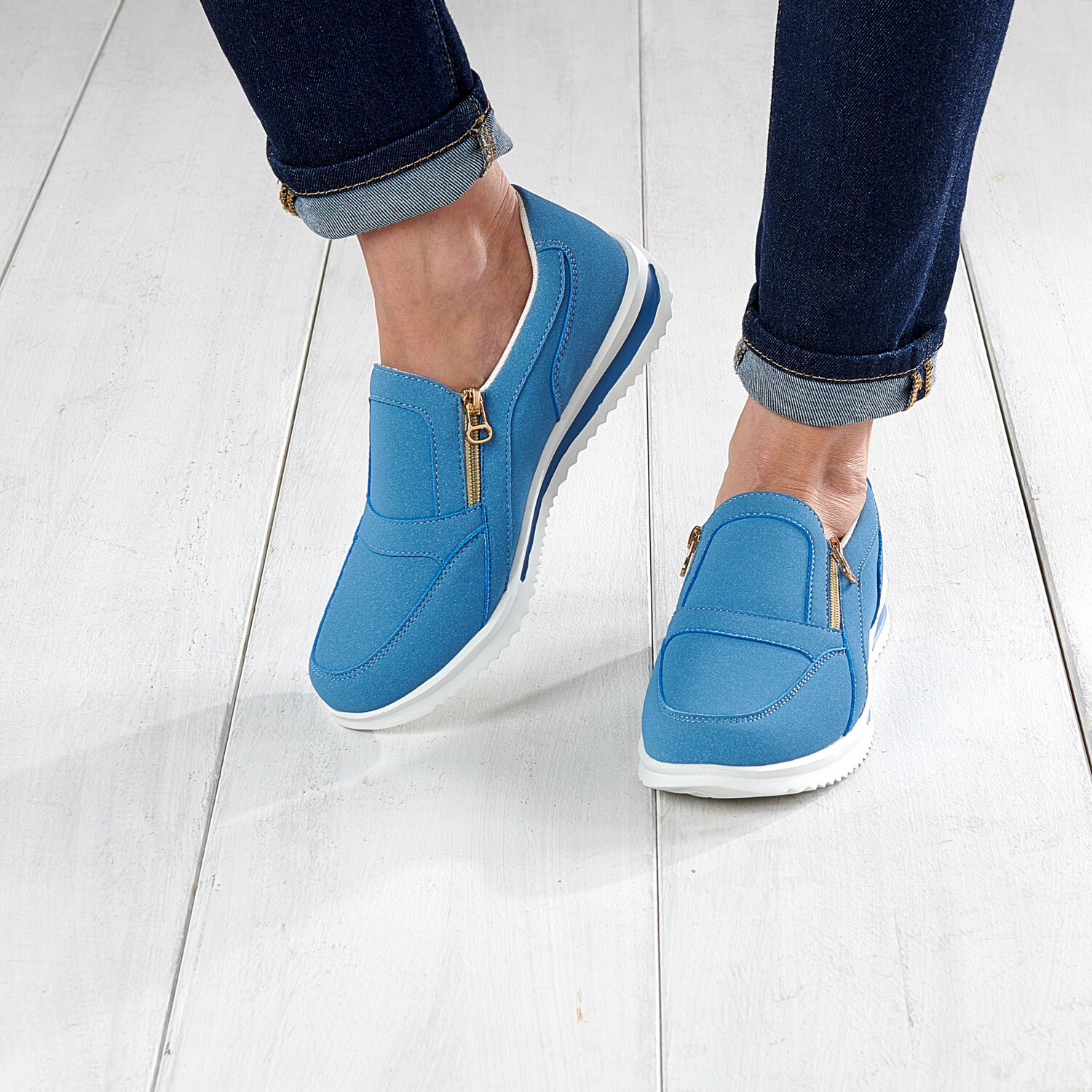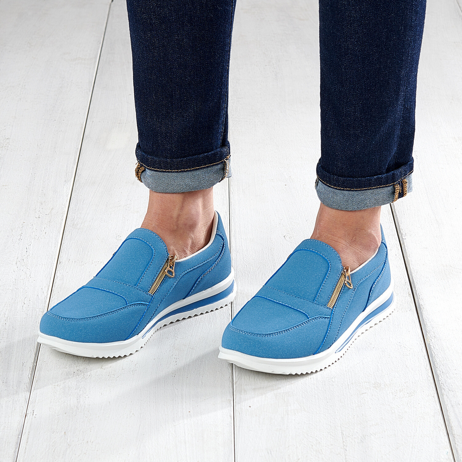 Naše tenisky Vám zajistí stylový vzhled. Módní džínový vzhled. Zapínání na 2 zipy. Snadno se nazouvají.