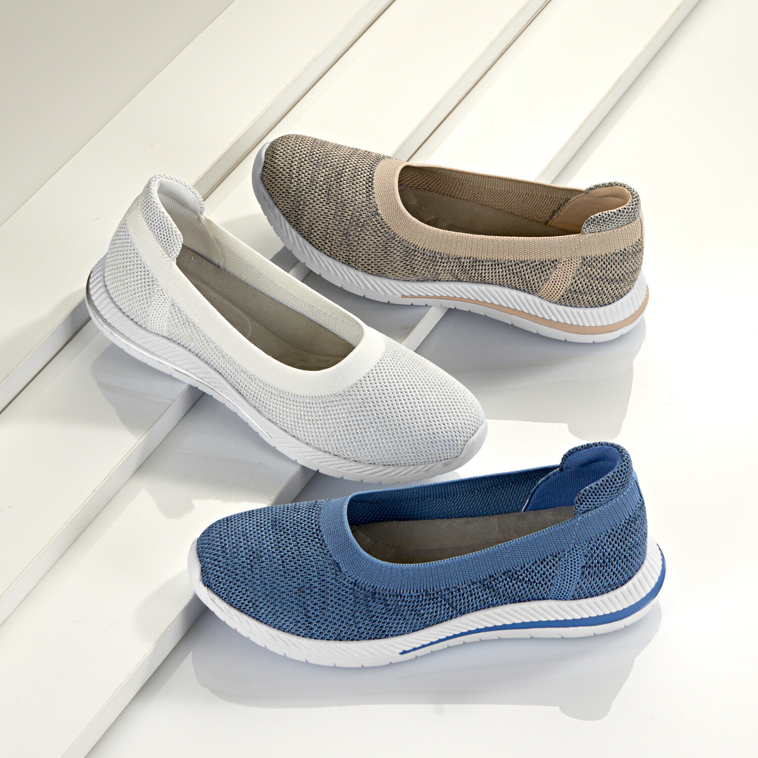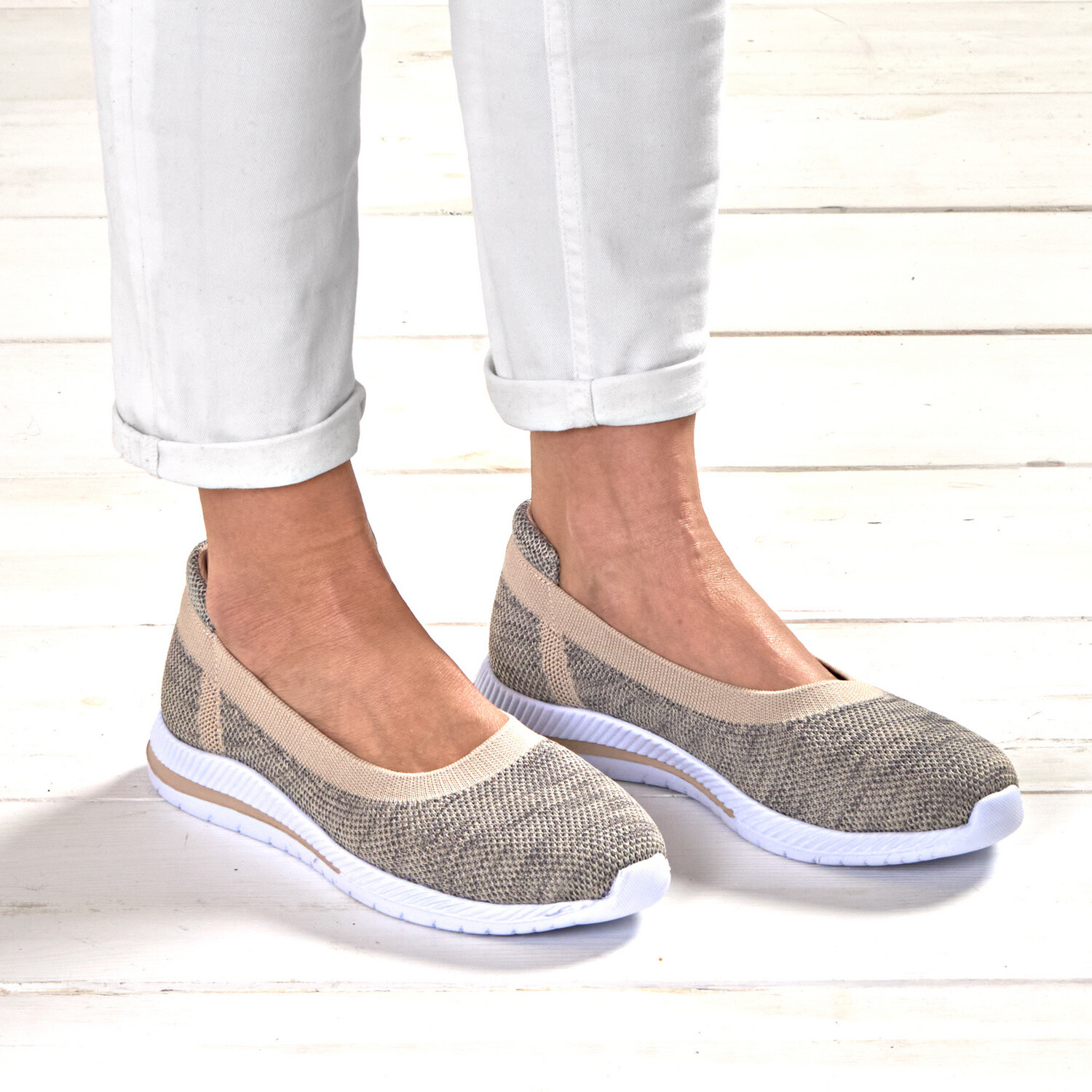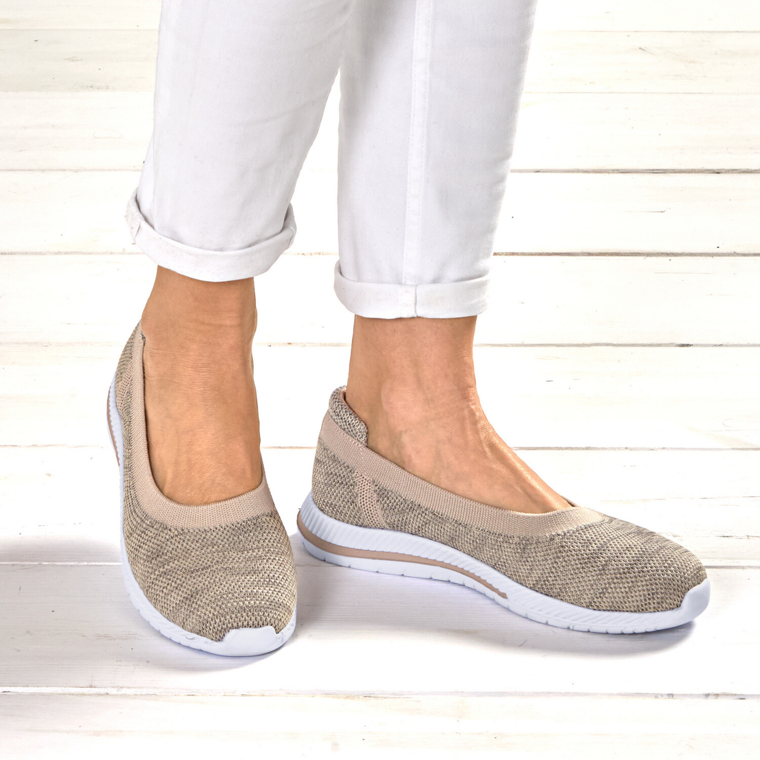 Vysoce elastické měkké baleríny v pleteném vzhledu s polstrovanou patou - velmi pohodlné a netlačí. Protančete se do léta na odpružené profilované podešvi, která je protiskluzová. Stélku lze vyměnit za vlastní vložky.Módní pletený vzhled. Vysoce elastické. Protiskluzové. Dobré odpružení.