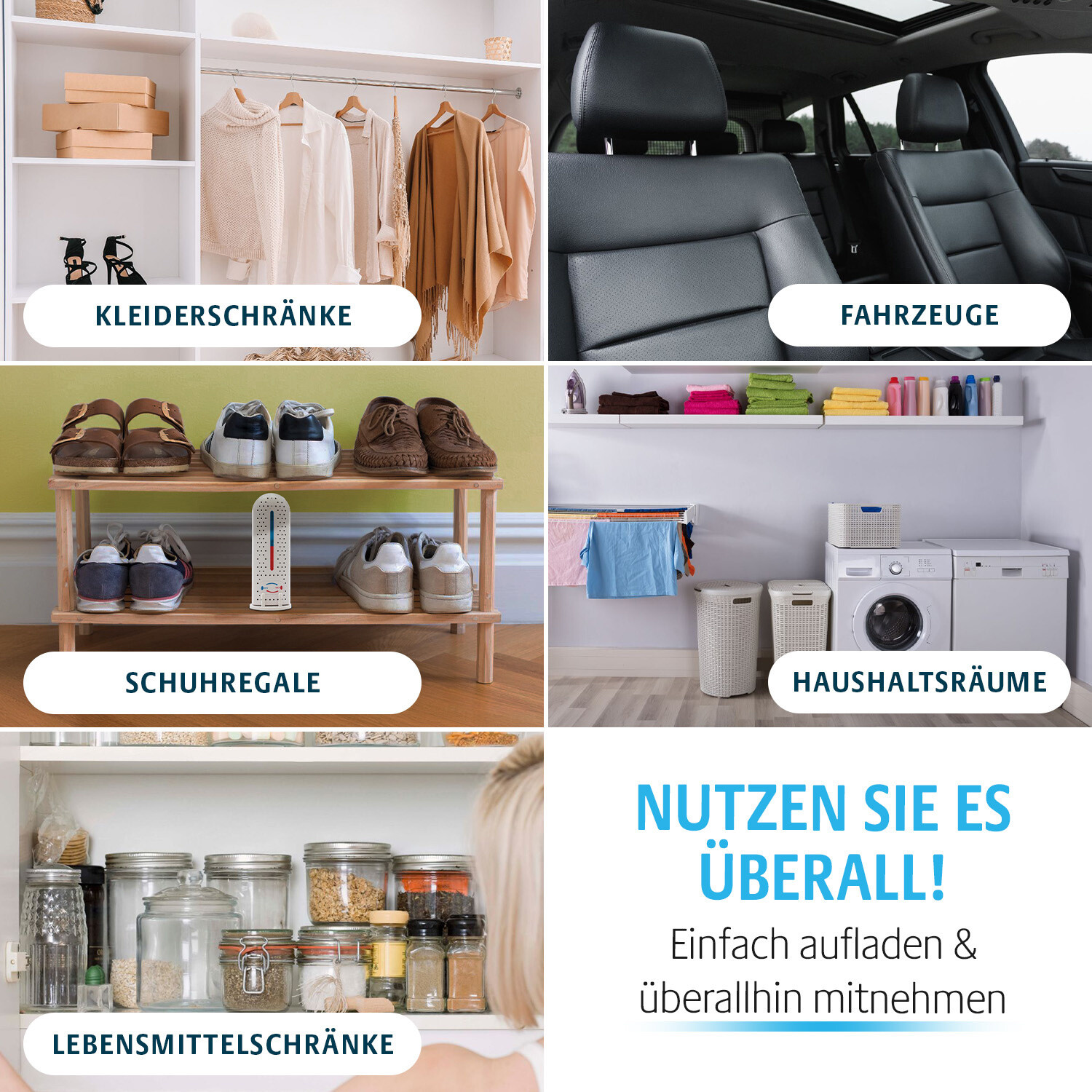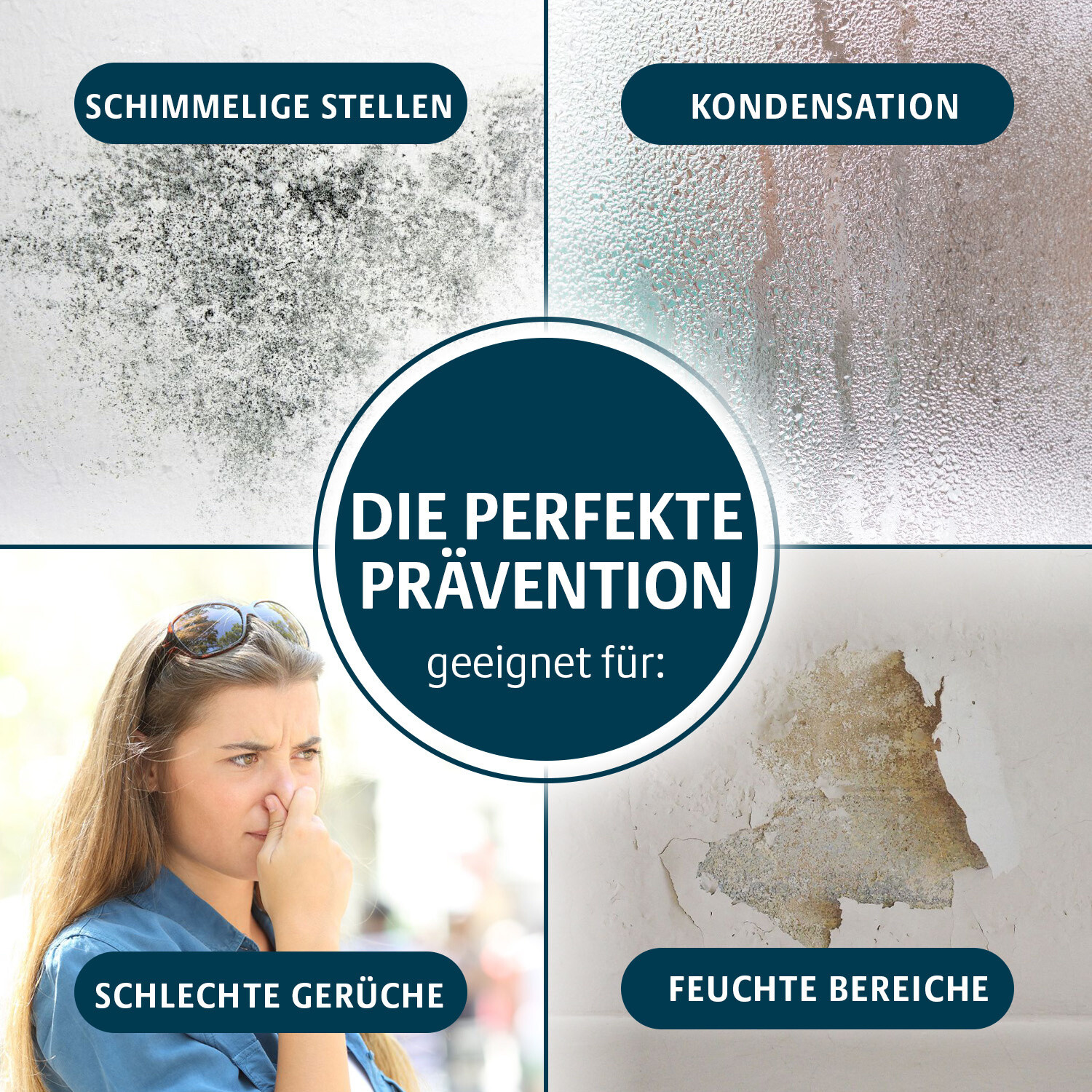 Ideální pro sklepy, verandy a zimní zahrady: Výkonné odvlhčování, které zabraňuje vzniku plísní a poškození vlhkostí. Malý model (nádržka na 500 ml) odstraňuje ze vzduchu až 250 ml/den. Velký model (nádržka na 1 500 ml) až 550 ml/den. S LED displejem, vypínáním při maximálním naplnění a výstupem teplého vzduchu pro sušení. K zapojení do sítě. Účinné odvlhčování. Vyvarujte se plísní. Kompaktní a výkonný. Výstup teplého vzduchu.