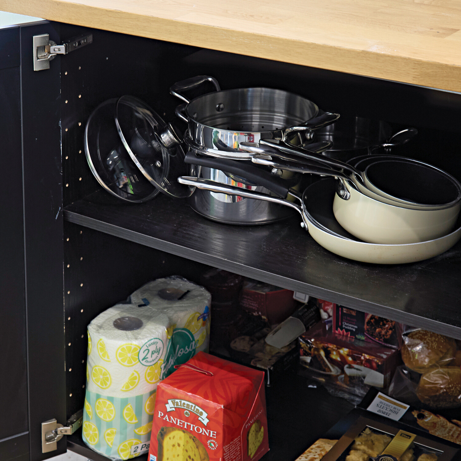 Ušetří ohýání a hledání. Robustní kovový nástavec, který lze vytáhnout jako zásuvku. Posune zadní prostory Vašich skříní dopředu. Ať už hrnce, lahve nebo zásoby, vše je přehledné a připravené. Nastavitelná šířka od 31,5 do 51,5 cm. U velkých skříní jich jednoduše použijte několik. Snadné připevnění: součástí jsou šrouby a silná oboustranná lepicí páska.