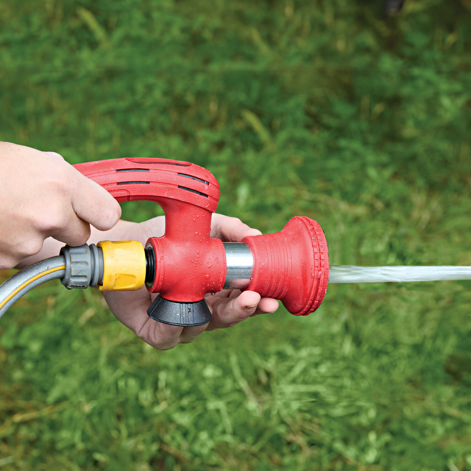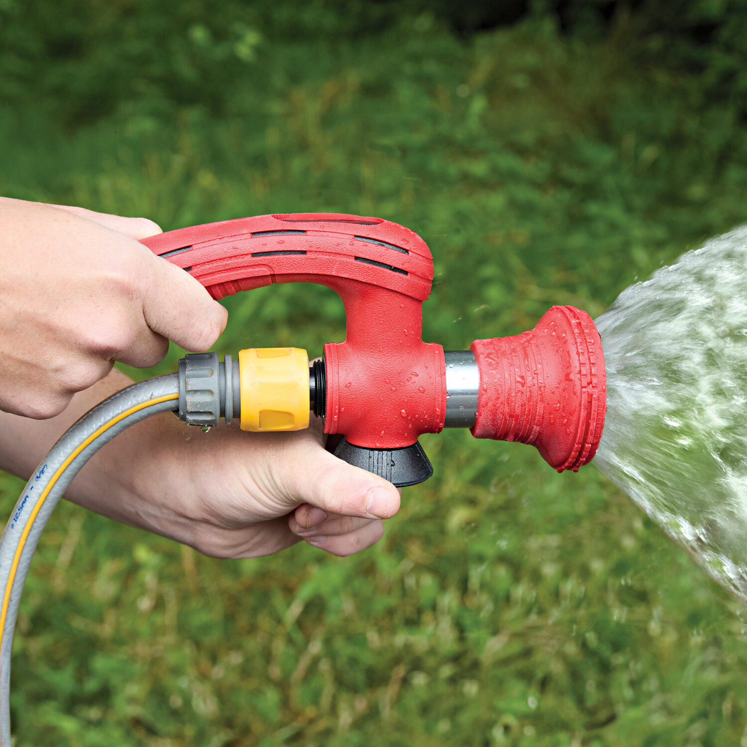 Vyvinuta pro hasiče: výkonná stříkací hlavice pro zahradní hadici s o 60 % vyšším výkonem. Mimořádně praktická a uživatelsky příjemná, s různými druhy nastavení postřiku a s praktickou pohodlnou rukojetí a tlačítkem zapnutí/vypnutí. Univerzální. O 60 % vyšší výkon. Dodáváno bez spojky na hadici.